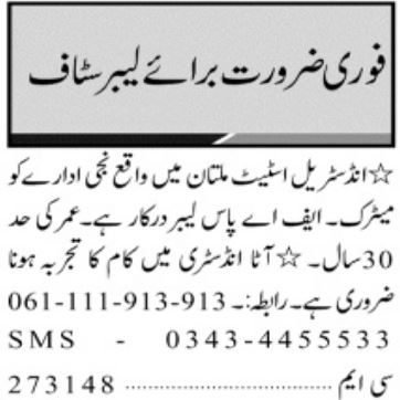Apply as per details in job advertisement. Login to view further details of how to apply via https://www.jobz.pk online.