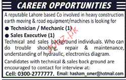 Technicians and Sales Executives Job Opportunity