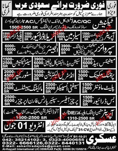 Technicians, Supervisor, Store Keepers Job Opportunity