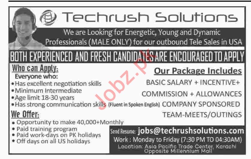 Latest Techrush Solutions Call Center Posts Karachi 2025