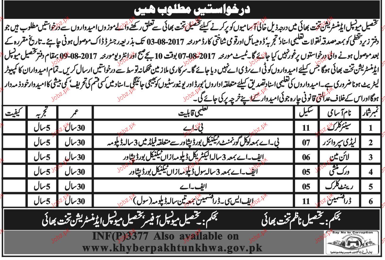 Latest Government Admin Clerical Posts Takhtbai 2025
