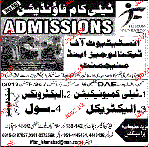 Telecom Foundation Admission in DAE in Islamabad Read newspaper ad for exact details.