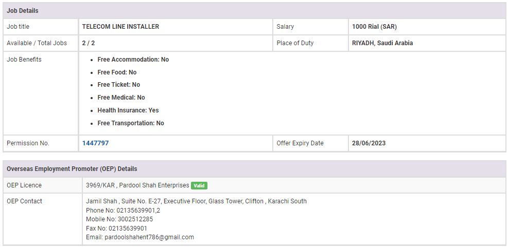 Original Source: https://beoe.gov.pk/foreign-jobs/1447797/1647768/2-telecom-line-installers-required-in-saudi-arabia-salary-1000-rial-sar