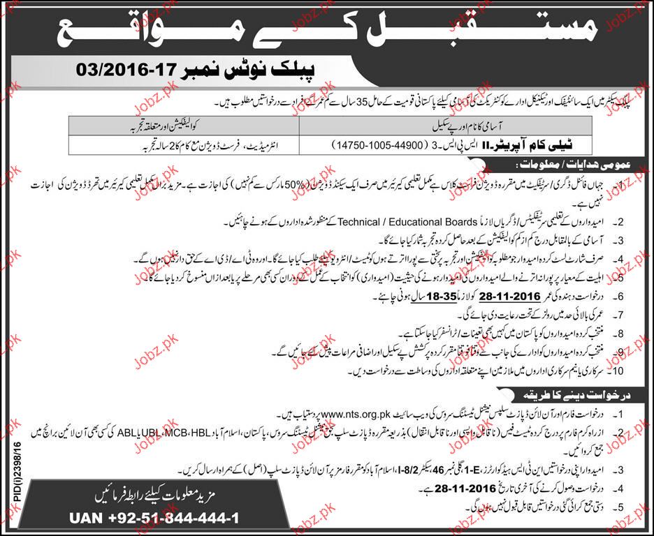 Apply as per details in job advertisement. Login to view further details of how to apply via https://www.jobz.pk online.