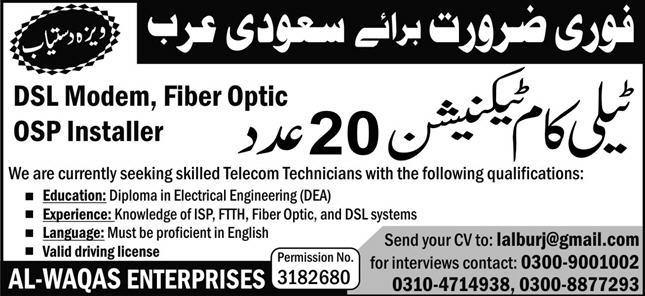 Apply at Al Waqas Enterprises latest Overseas jobs in Telecom and departments before closing date which is around January 7, 2025 or as per closing date in newspaper ad. Read complete ad online to know how to apply on latest Al Waqas Enterprises job opportunities.