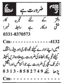 Private Company Quetta, quetta Balochistan Pakistan invites applications from eligible candidates for the post of qari, munshi and telegrapher as per advertisement of February 13, 2024 published in daily Jang Newspaper. Candidates with Bachelor, Matric and Intermediate etc. educational background will be preferred.