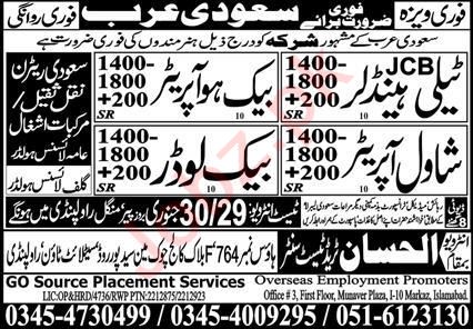 GO Source Placement Services Saudi Arabia, saudi arabia Saudi Arabia invites applications from eligible candidates for the post of telehandler, backhoe operator, backhoe loader and shawal operator as per advertisement of January 28, 2024 published in daily Express Newspaper. Bachelor, Matric, Intermediate and DAE etc. educational qualification will be preferred.