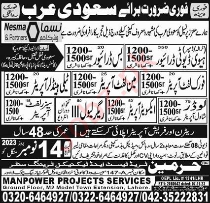 ManPower Project Service is looking for candidates for following posts as per job advertisement published in daily Express Newspaper of November 12, 2023 for location Saudi Arabia, saudi arabia Saudi Arabia: