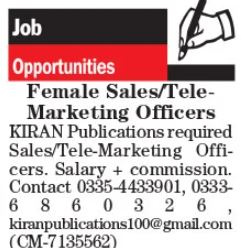Kiran Publication invites applications for job positions advertised in daily The News dated 26 July 2023 for following vacancies in Lahore, lahore Punjab Pakistan.