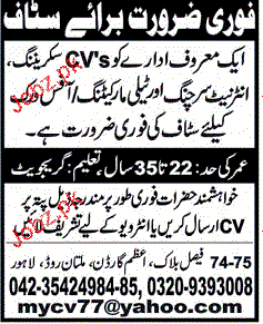 Apply as per details in job advertisement. Login to view further details of how to apply via https://www.jobz.pk online.