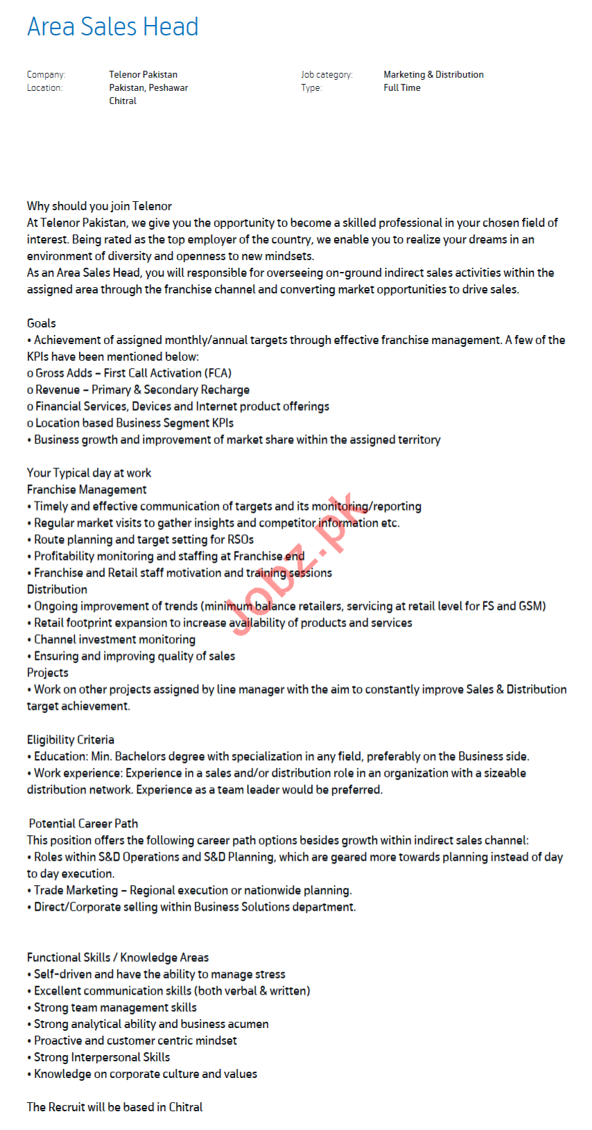 Telenor Pakistan Jobs 2020 For Area Sales Head