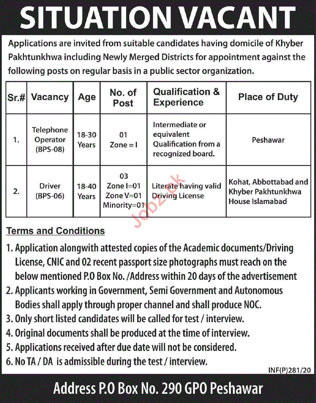 Apply as per details in job advertisement. Login to view further details of how to apply via https://www.jobz.pk online.