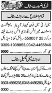 Telephone Operator & Field Worker Jobs 2022 in Lahore