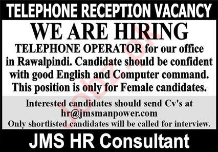 Private Company jobs advertisement dated about 9 April 2023 in daily Jang Newspaper invites application for the vacant post of telephone operator in Rawalpindi, rawalpindi Punjab Pakistan. Preferred Education is Bachelor and Intermediate etc.