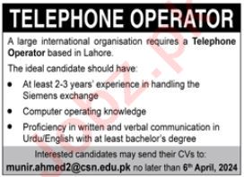 International Organization latest Private Telecom jobs and others can be applied till 6 April 2024 or as per closing date in newspaper ad. Read complete ad online to know how to apply on latest International Organization job opportunities.