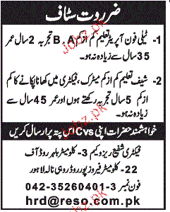 Latest Private Company Telephone Operator Posts Lahore 2025