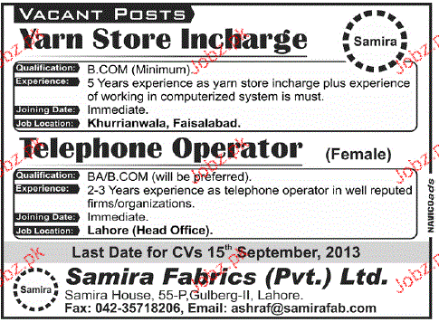 Latest Private Company Telephone Operator Posts Lahore 2025