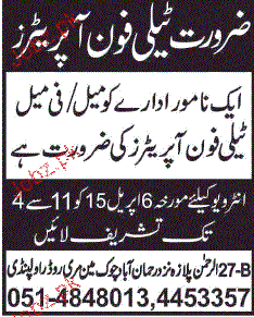 Latest Private Company Telephone Operator Posts Rawalpindi 2025