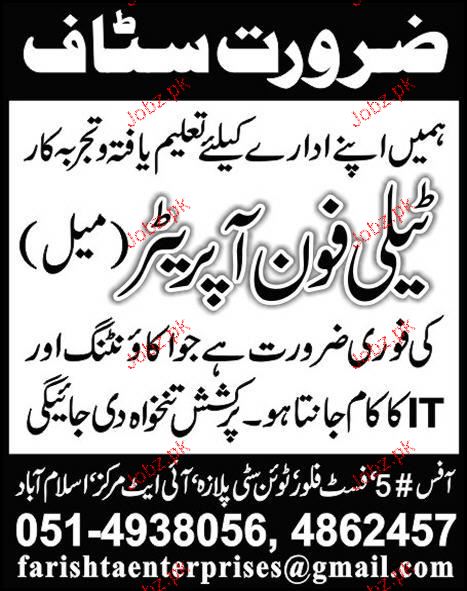 Latest Private Company Telephone Operator Posts Islamabad 2025