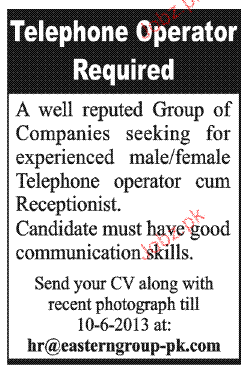 Latest Private Company Telephone Operator Posts Lahore 2025