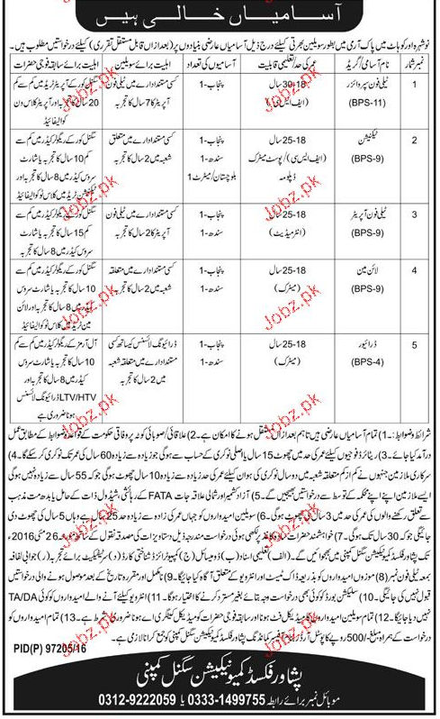 Telephone Operators, Telephone Supervisor Job in PAK Army