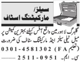 Marketing Company jobs advertisement dated about 28 November 2025 in daily The News Newspaper invites application for the vacant post of marketing staff, marketing officer and telesales staff in Gulberg Lahore, lahore Punjab Pakistan. Intermediate etc. educational qualification will be preferred.
