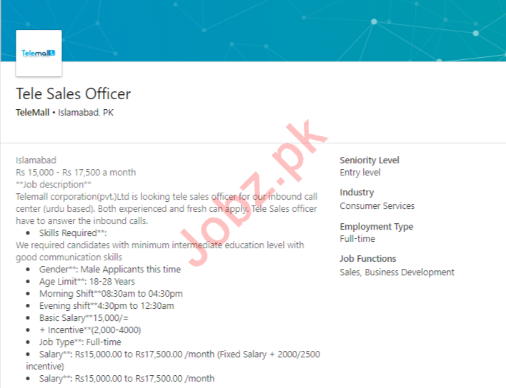 Apply as per details in job advertisement. Login to view further details of how to apply via https://www.jobz.pk online.