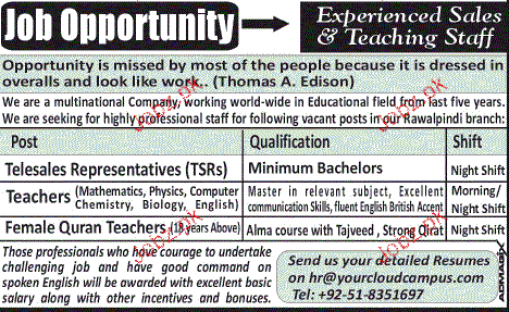 Latest Private Company Teaching Posts Rawalpindi 2025