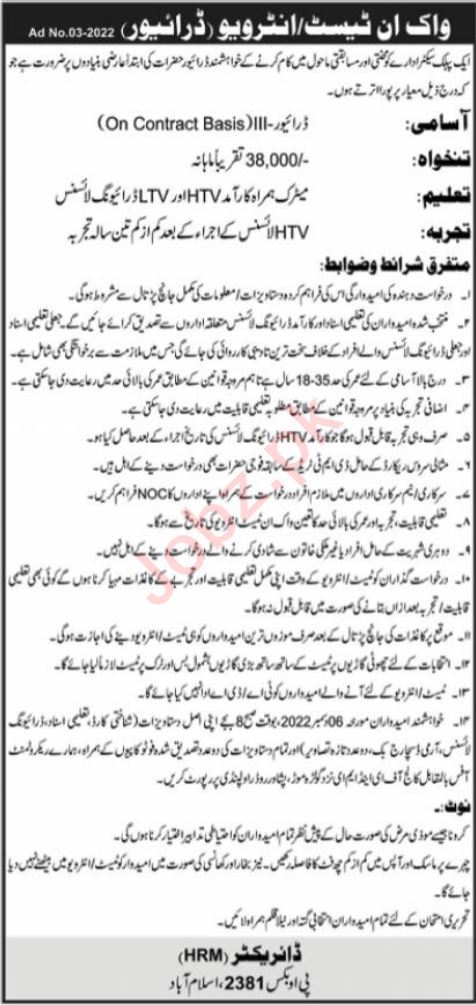 Public Sector Organization Islamabad, islamabad Islamabad Pakistan invites applications from eligible candidates for the post of driver as per advertisement of November 27, 2022 published in daily Nawaiwaqt Newspaper. Persons with Matric etc. education can apply.