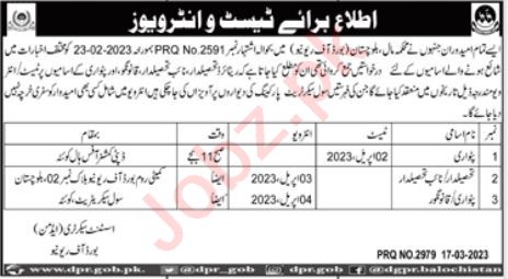 Test And Interviews For Jobs At Board Of Revenue Balochistan