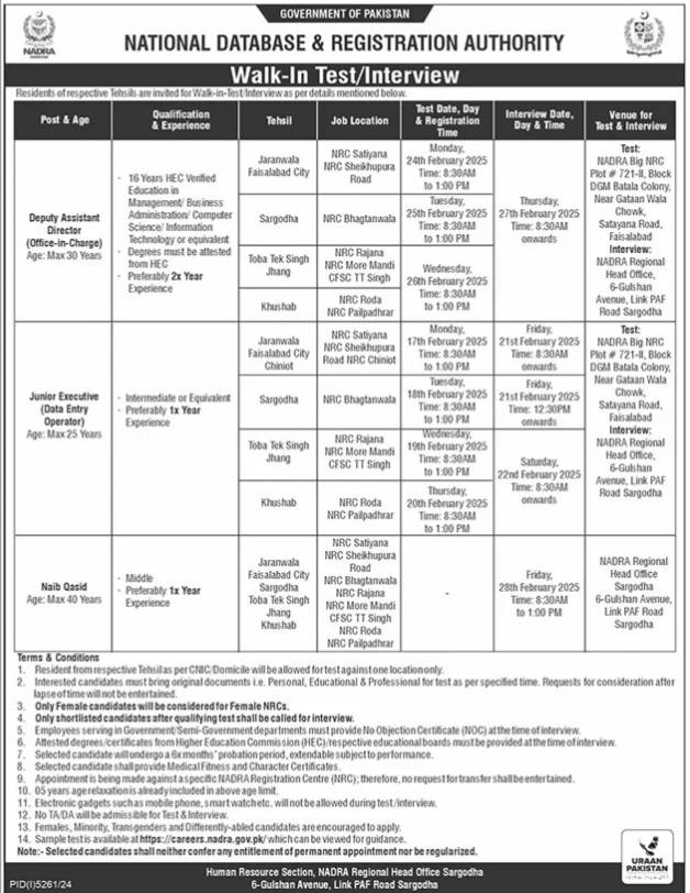 Vacancies in National Database & Registration Authority NADRA Advertisement February 2025