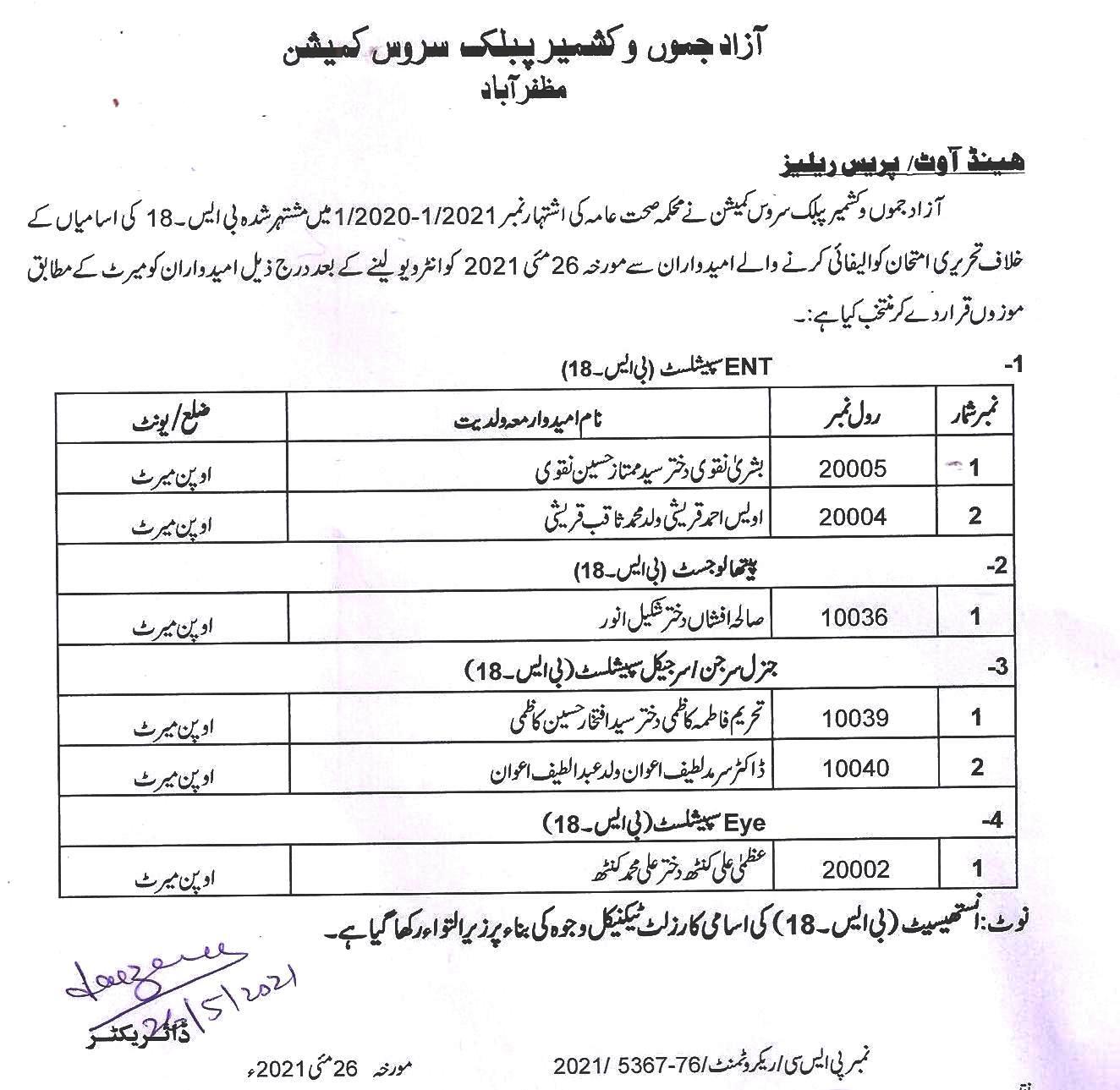 Azad Jammu and Kashmir Public Service Commission AJKPSC has issued final selected candidates merit list against the posts of ENT Specialist, Pathologist, General Surgeon, Surgical Specialist, Eye Specialist in Health Department AJK.