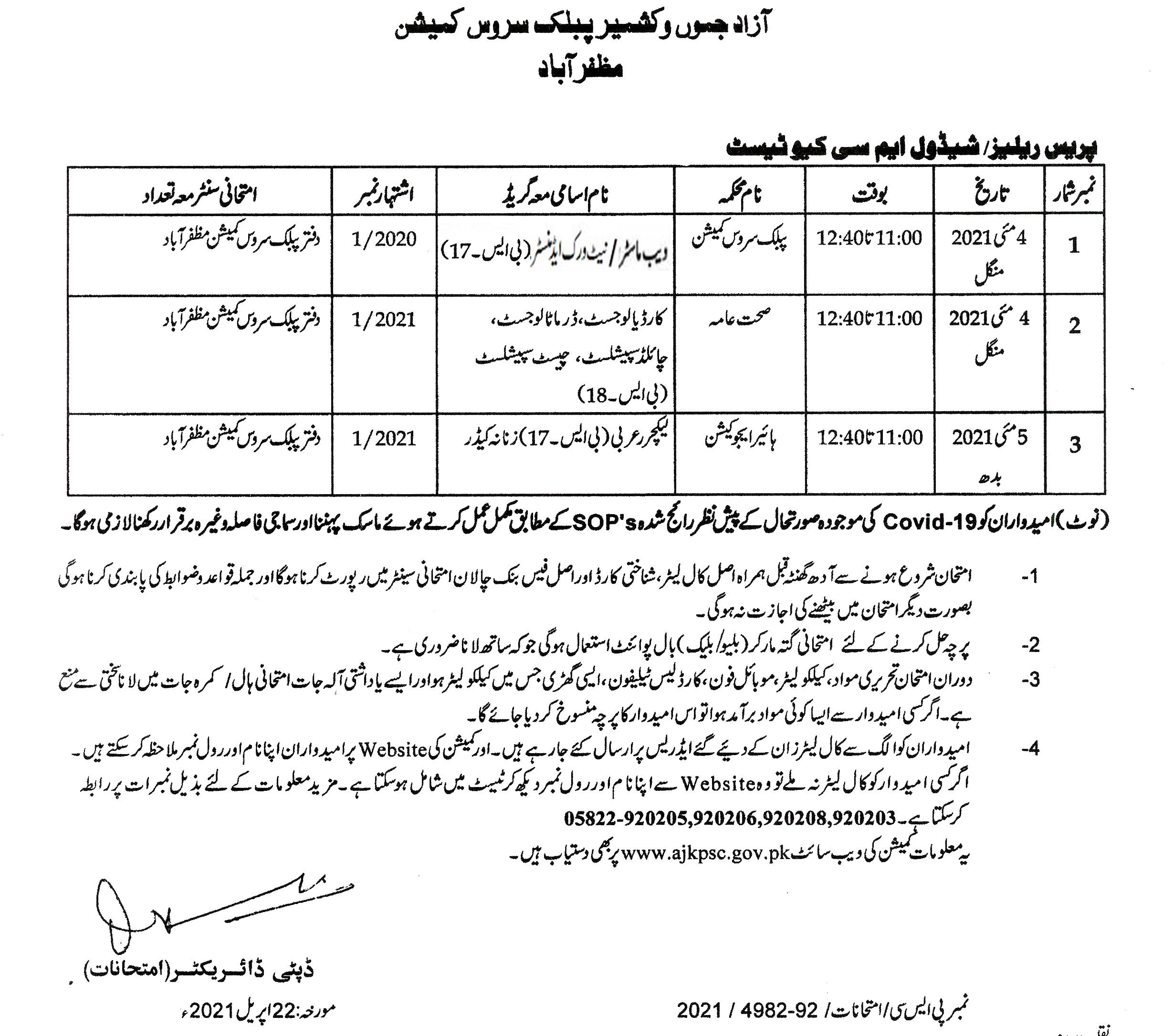 AJKPSC Jobs 2021 Test Schedule May 2021