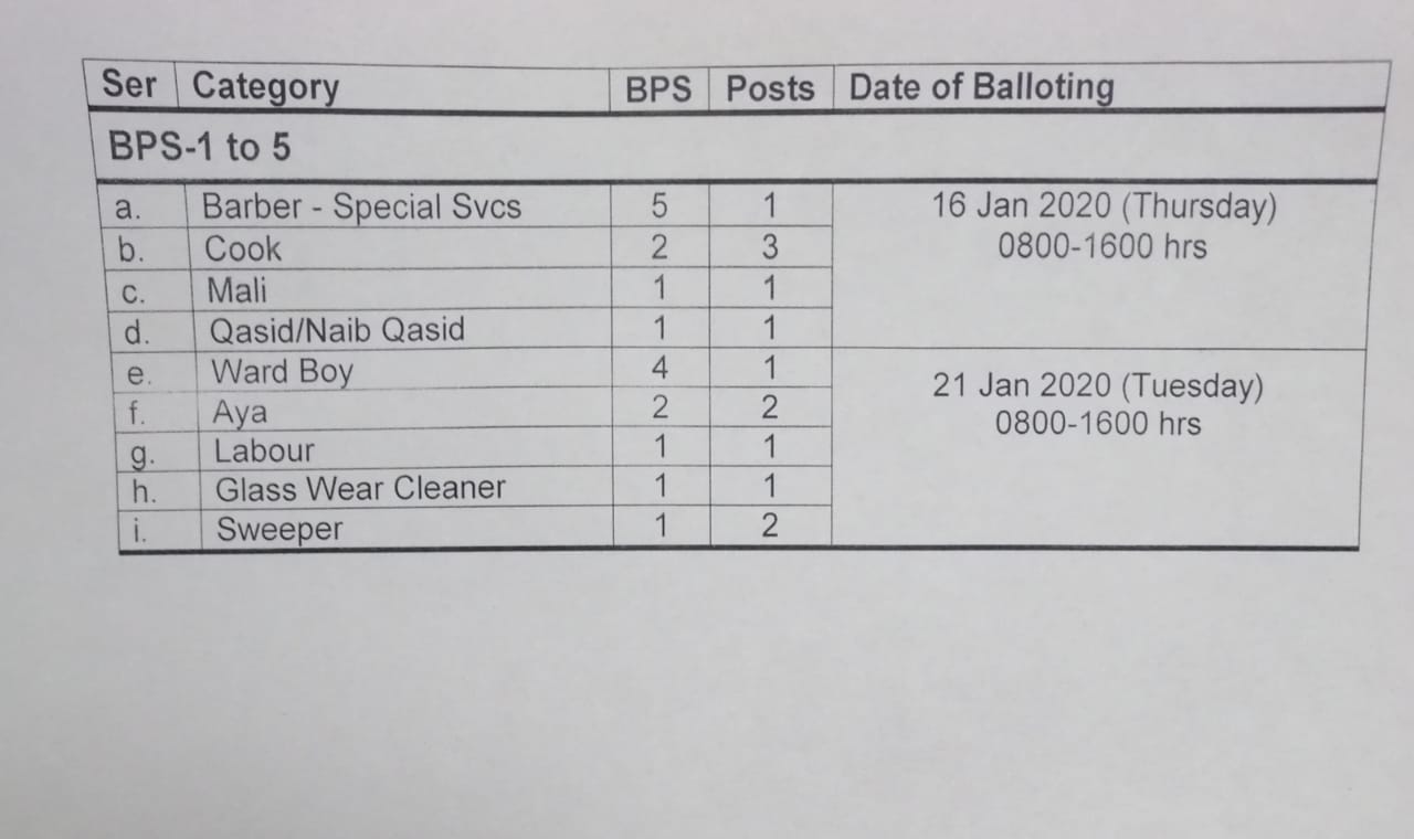 Allied Testing Service ATS has announced interview schedule against the posts of Barber, Cook, Mali, Qasid, Naib Qasid, Ward Boy, Aya, Labour, Glass Wear Cleaner, Sweeper in Armed Forces Institute of Cardiology AFIC, Rawalpindi.