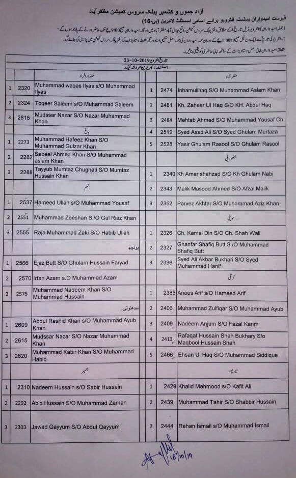 Azad Jammu and Kashmir Public Service Commission Interview Schedule