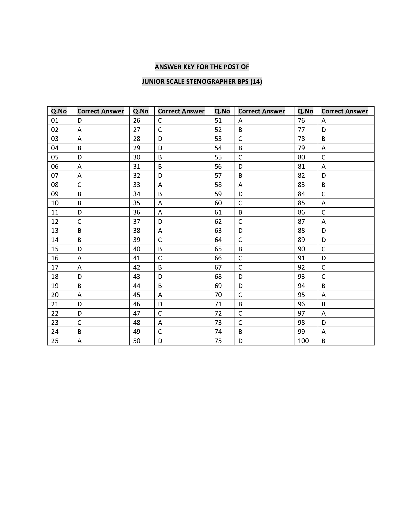 Allied Testing Service ATS has announced test result answer keys against the posts of Office Assistant, Junior Scale Stenographer, Electrical-Cum-Mechanical Supervisor, Junior Clerk, Artificial Insemination Technician, Veterinary Assistant, Carpenter, Computer Operator in Livestock & Dairy Development Department, KPK.