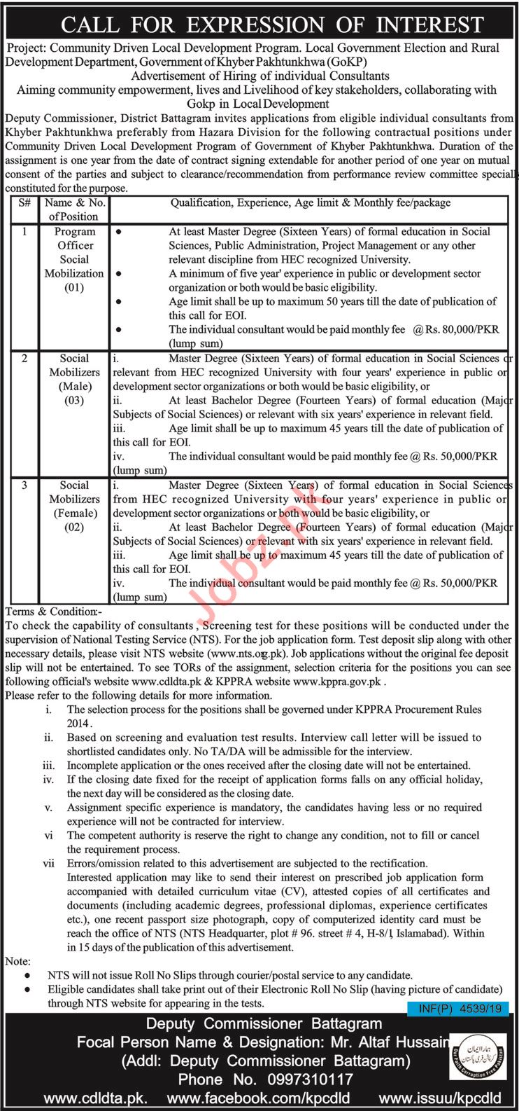 National Testing service has declared the various post job opportunity in the Deputy Commissioner Swabi Community Driven Local Development Program. The Advertisement have given below.