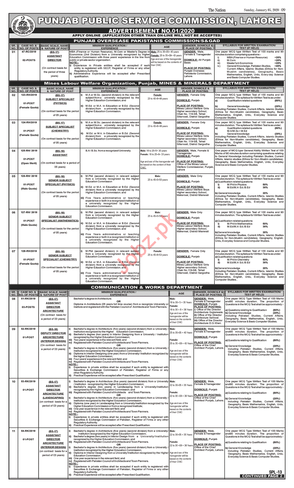 Punjab Public Service Commission PPSC Advertisement No 01 2020
