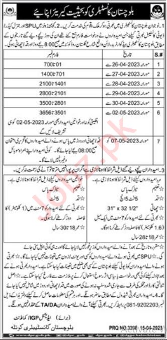 Vacancies in Balochistan Constabulary Advertisement April 2023