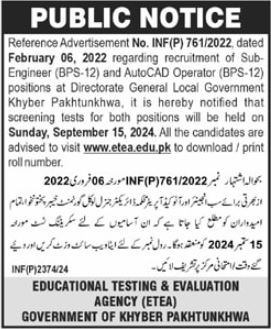 Vacancies in Educational Testing and Evaluation Agency ETEA Advertisement September 2024