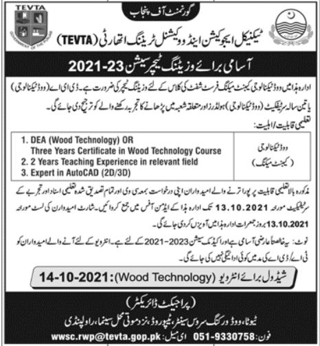 TEVTA Wood Working Service Center Jobs 2021