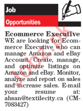 Textile City Lahore Jobs 2020 for E Commerce Executive
