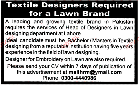 Apply as per details in job advertisement. Login to view further details of how to apply via https://www.jobz.pk online.