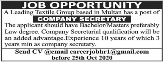 Apply as per details in job advertisement. Login to view further details of how to apply via https://www.jobz.pk online.