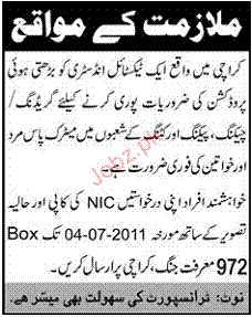 Latest Textile and Industry Industrial Posts karachi 2025