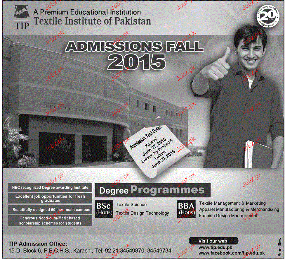 Textile Institute of Pakistan Admission in BSC and BBA in Karachi. Read newspaper ad for exact details.