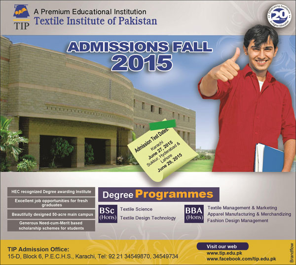Textile Institute of Pakistan Admission in BSC and BBA in Karachi. Read newspaper ad for exact details.