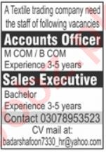 Textile Trading Firm is looking for candidates for following posts as per job advertisement published in daily Jang Newspaper of November 6, 2022 for location Lahore, lahore Punjab Pakistan: