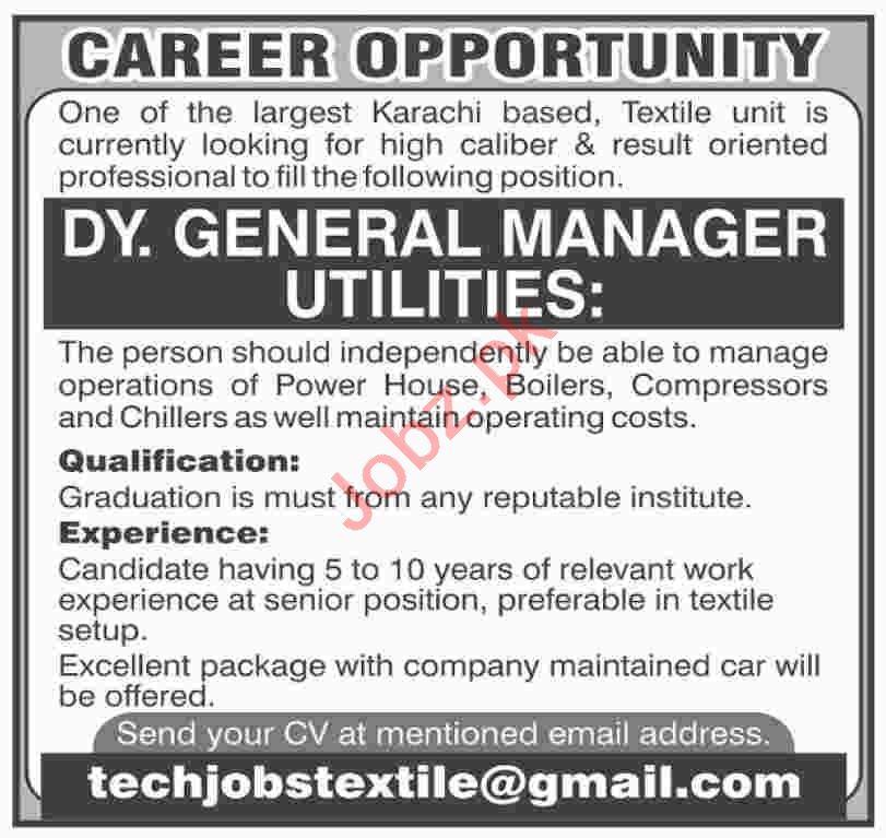 Textile Unit Deputy General Manager Utilities Jobs 2019