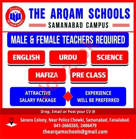 The Arqam School Samanabad Faisalabad Jobs 2019